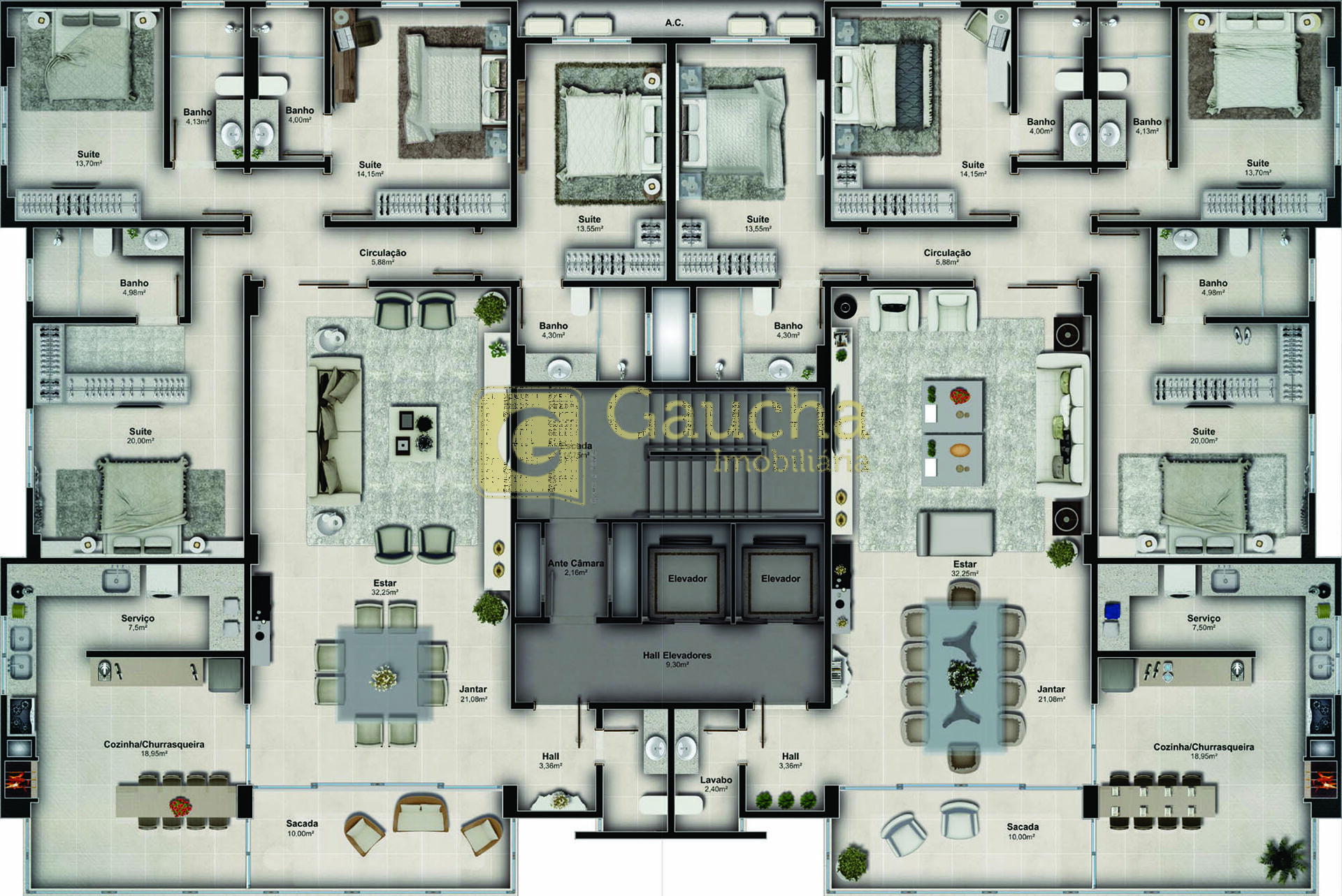 4 Dormitórios, sendo 4 suítesGaragens