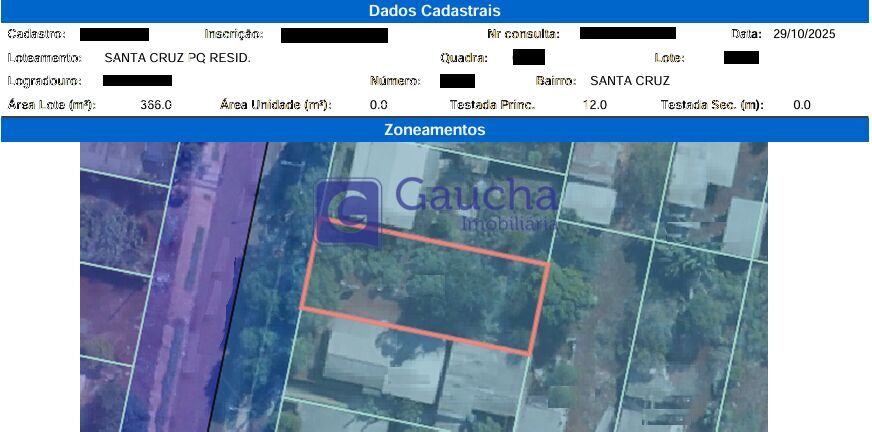 Terreno com 366 m², Sendo 12m x 30,50 m, Coeficiente 2, Ocupação 60%.